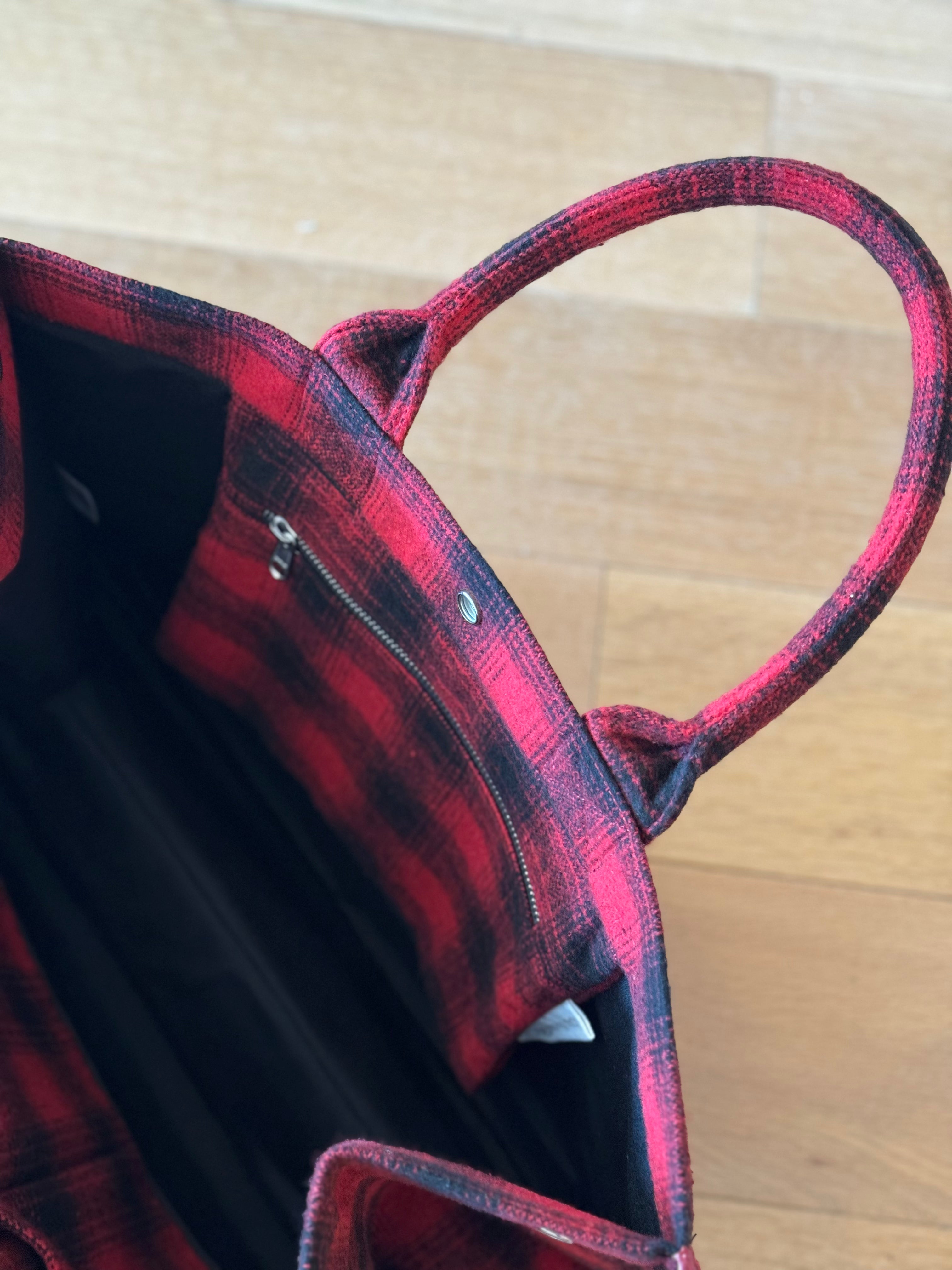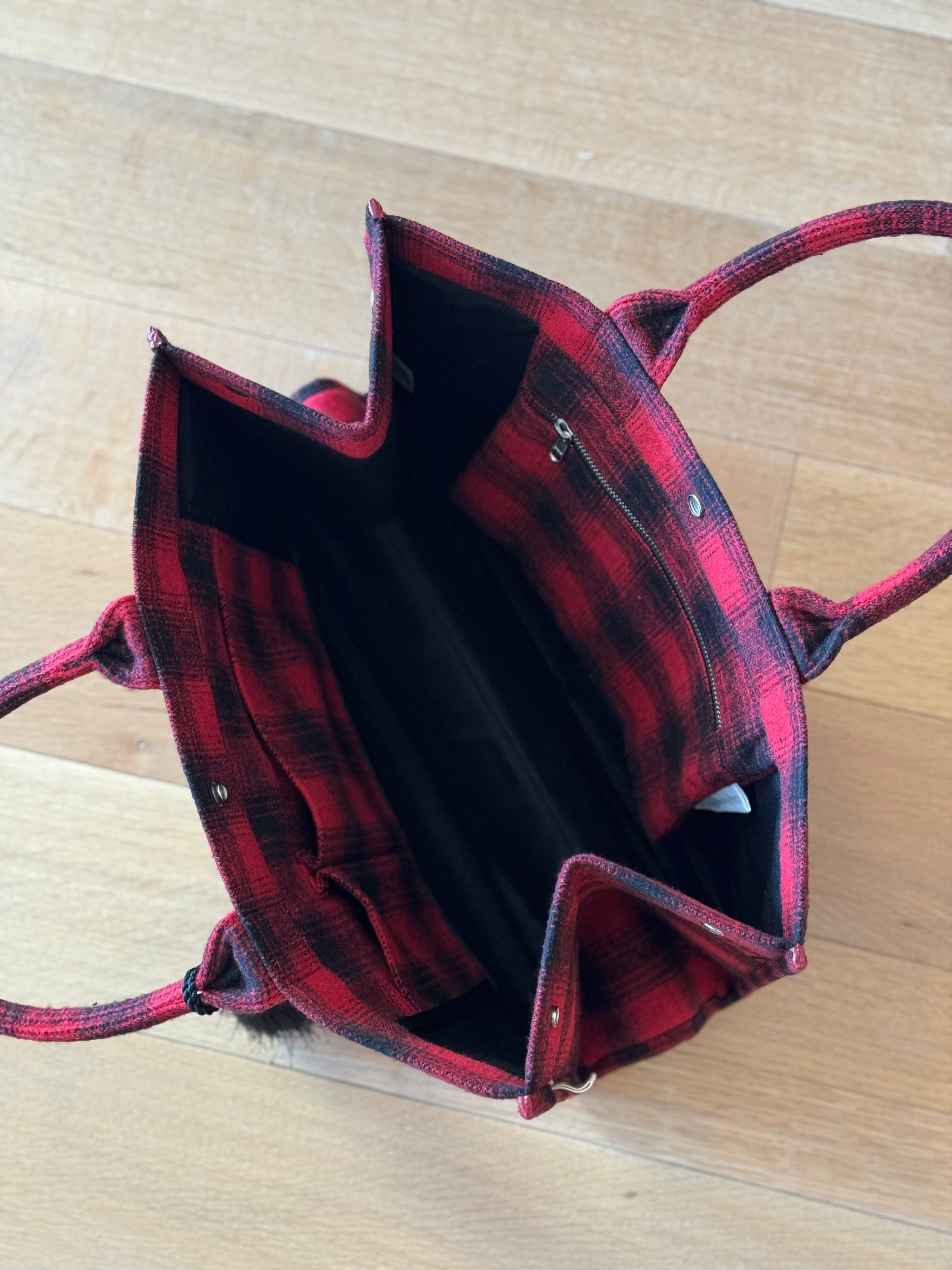 Black and Red Flannel East West Bag + FREE Black Tassel