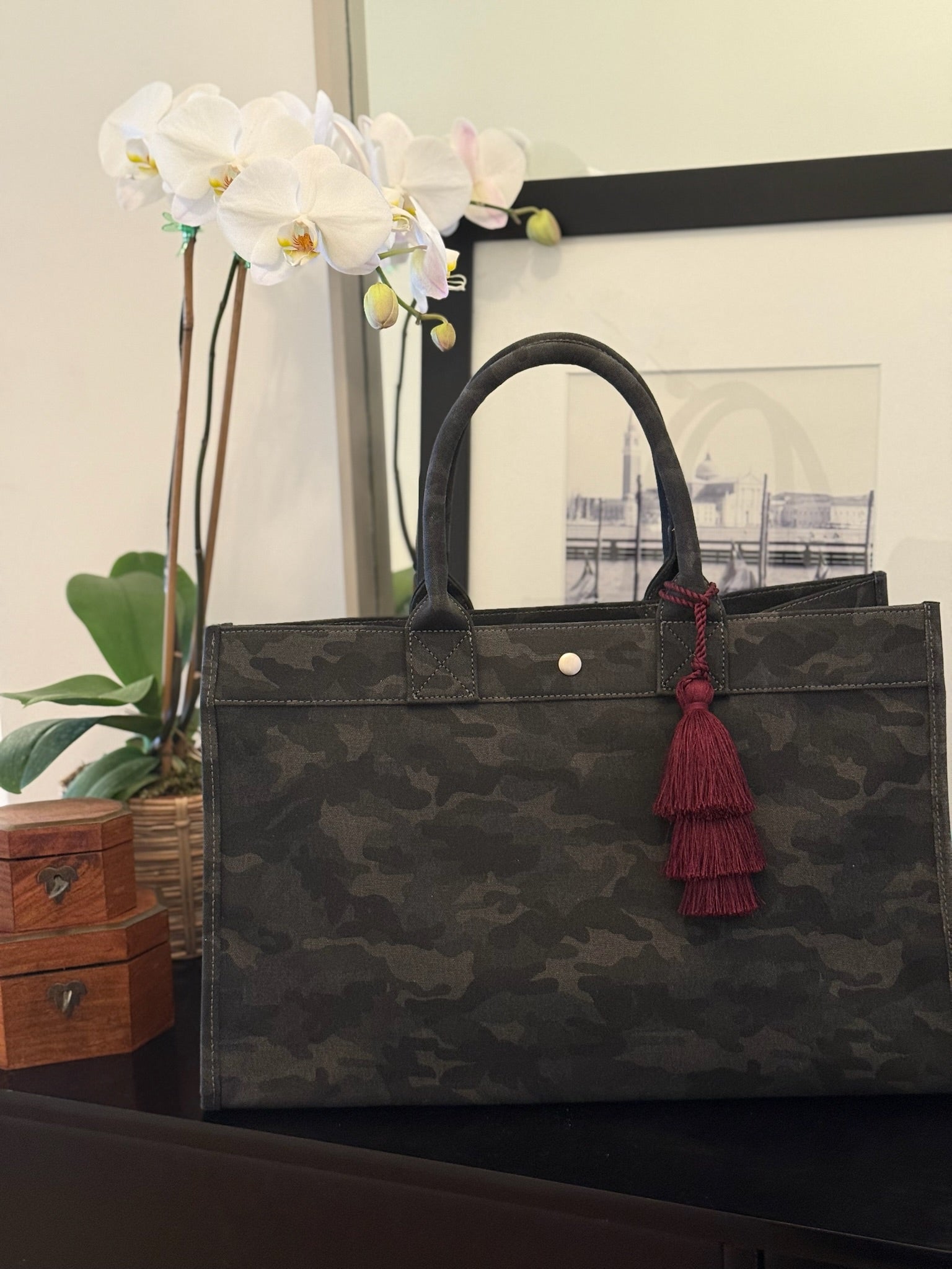Black Camo East West Bag + FREE Bordeaux Tassel