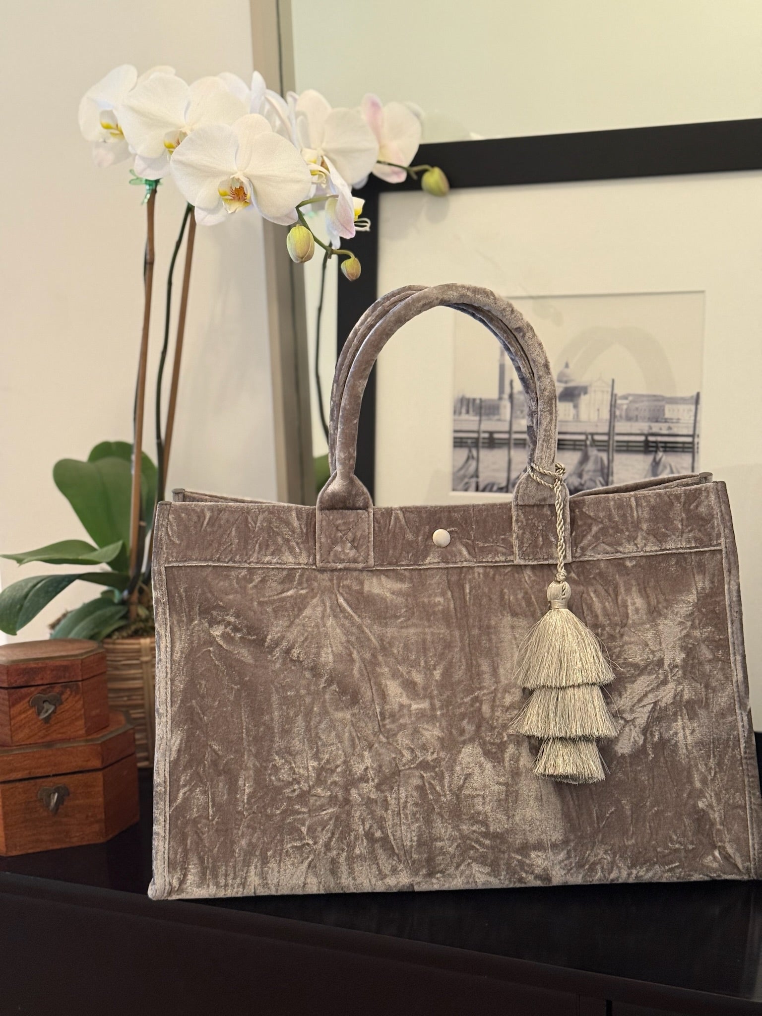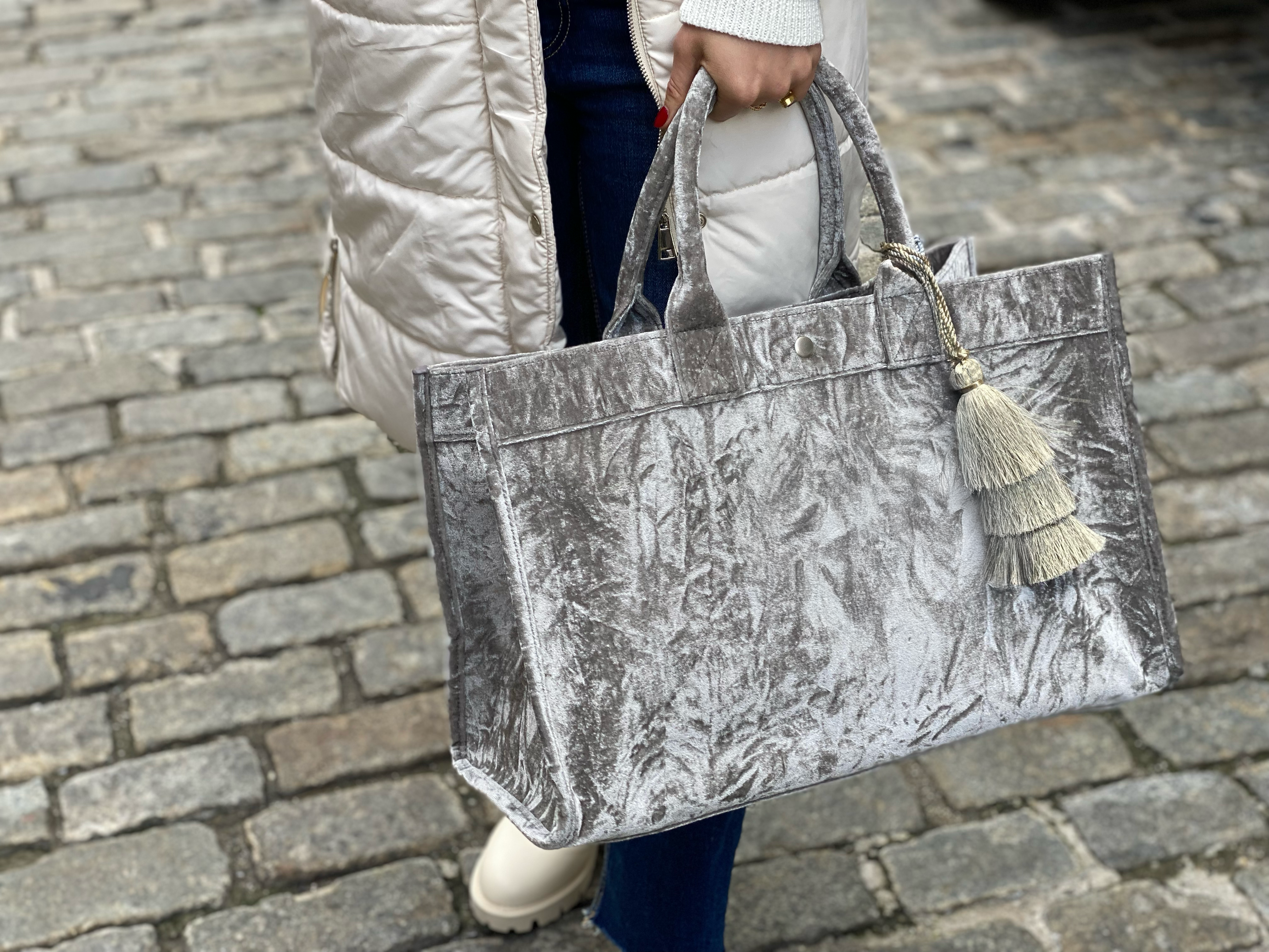 Grey Velvet East West Bag + FREE Champagne Tassel