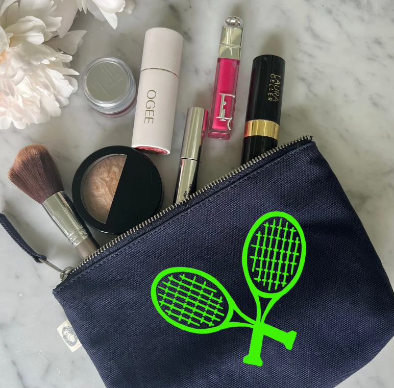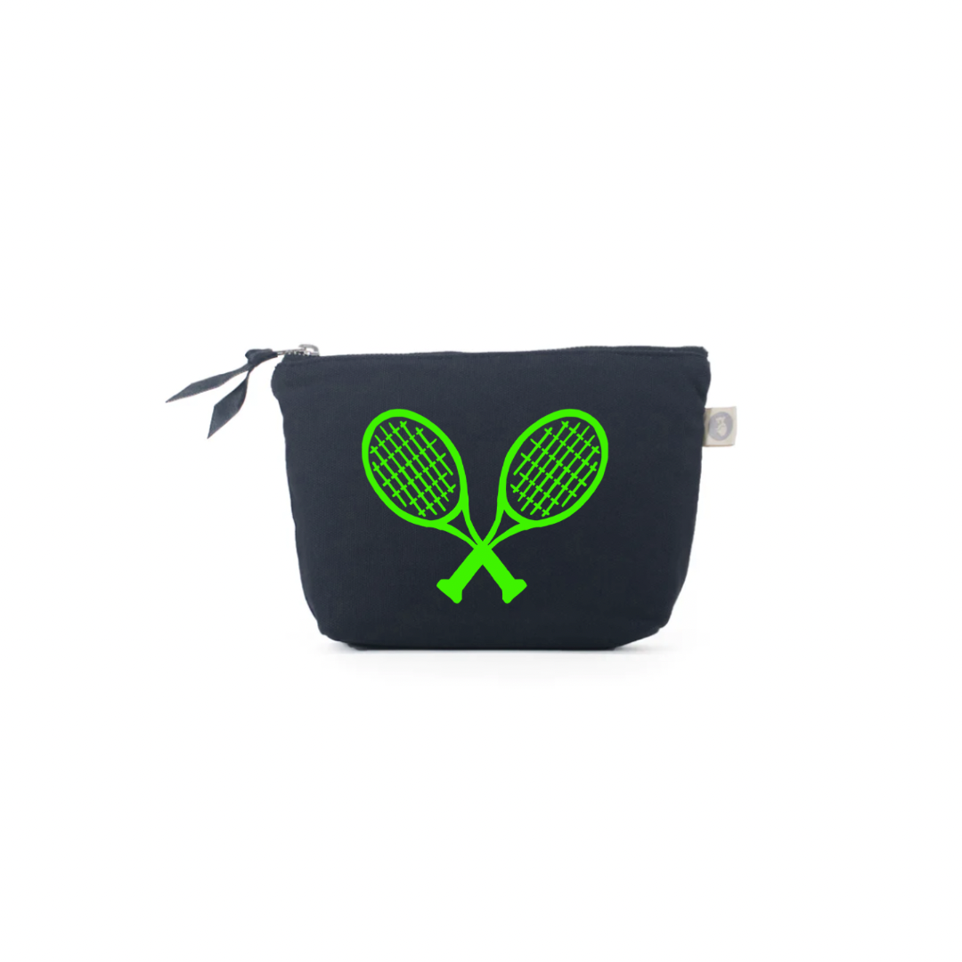 TENNIS RACQUETS Makeup Bag- Navy with Green