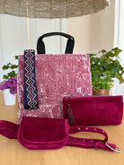 Pink Crushed Velvet Luxe North South Bag Gift Set - CYBER OFFER